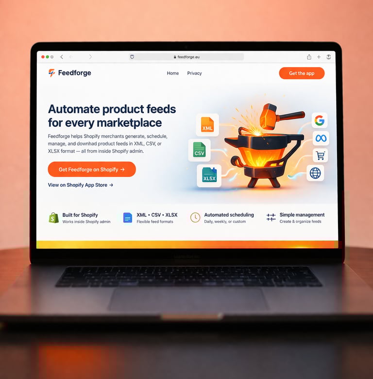 Feedforge automates product feed creation for Shopify stores.